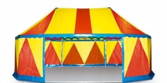 Die ovalen Zirkuszelte sind ideal für kleine Circusvorstellungen, da zwischen die Masten eine kleine Manege passt. Beide Masten sind für den Ausgleich von Unebenheiten mit einer Fußspindel ausgestattet.